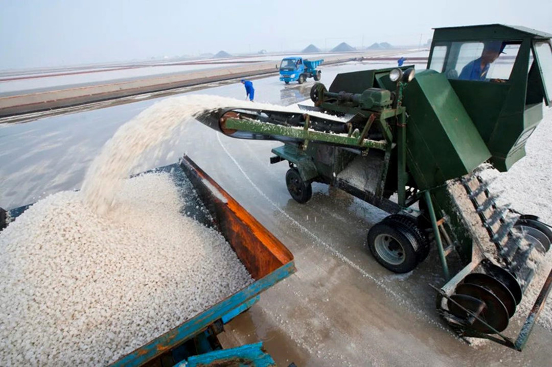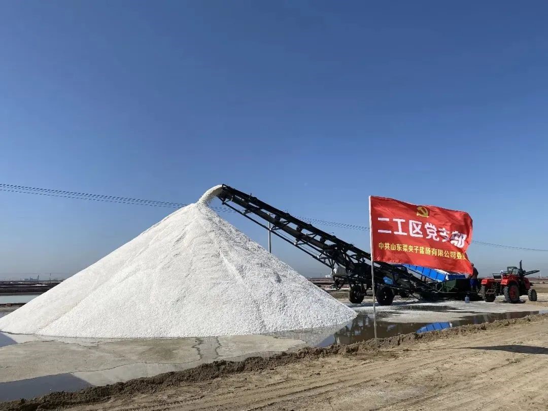暮春时节,山东金年会(金字招牌) 所属鲁盐集团菜央子盐场、寒亭一盐场春季捞盐、收盐工作正如火如荼地进行。各工区党旗飘扬、机械轰鸣、人头涌动。